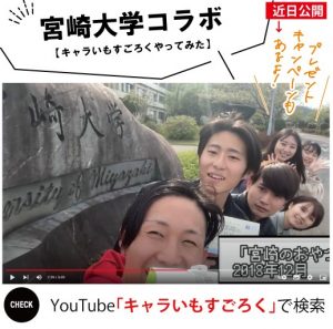 宮崎大学地域資源創成学部丹生ゼミ5期生と連携して、プロモーション動画を作成しました? 学生ならではの視点で、キャラいもの魅力と歴史を楽しくポップに伝えてくれてい...